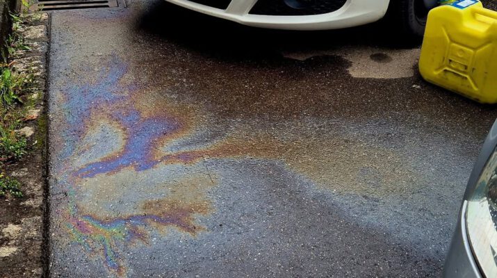 Ein Ölfleck im Stadtgebiet wurde mit Ölbindemittel abgestreut und aufgenommen.
