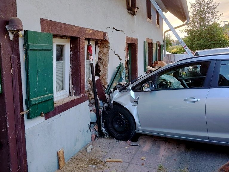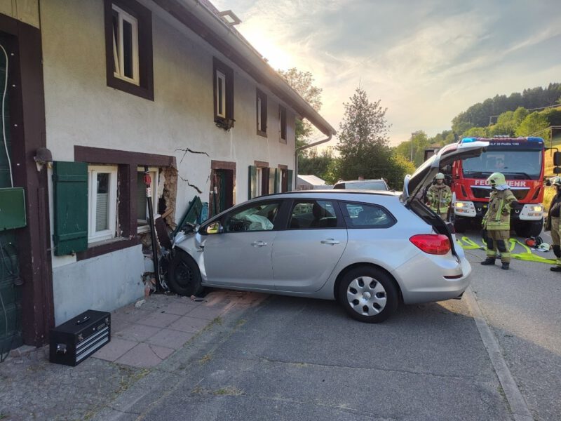 Am 05.07.2025 wurde die Abteilung Elzach zu einem technischen Hilfeleistungseinsatz (TH2) alarmiert. Ein Pkw war aus bislang ungeklärter Ursache in ein Wohnhaus gefahren.