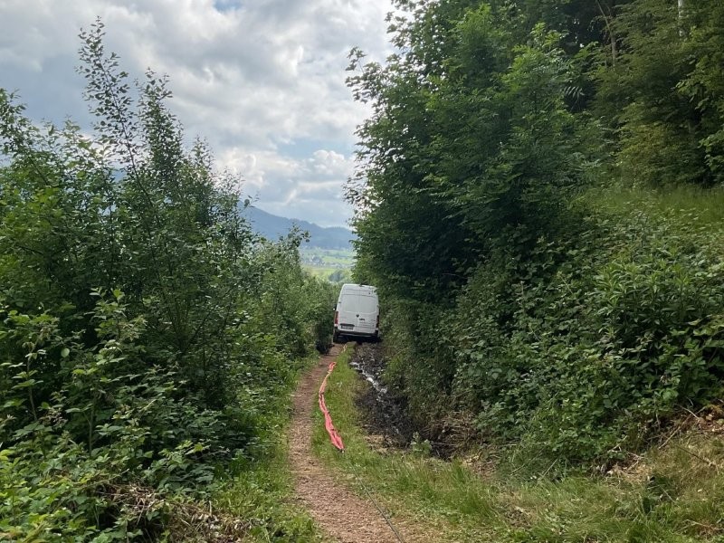 Technische Hilfeleistung – Paket-Fahrer ferstgefahren, dass Fahrzeug musste gegen abrutschen gesichert werden.